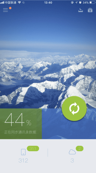 3、多部手机同时使用,其他手机备份完毕后,可用一键同步,恢复通讯录到iPhone。