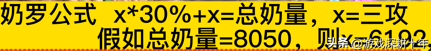 在和奶妈相同总奶量8050三攻的情况下,推算出奶萝的三攻为 6192,