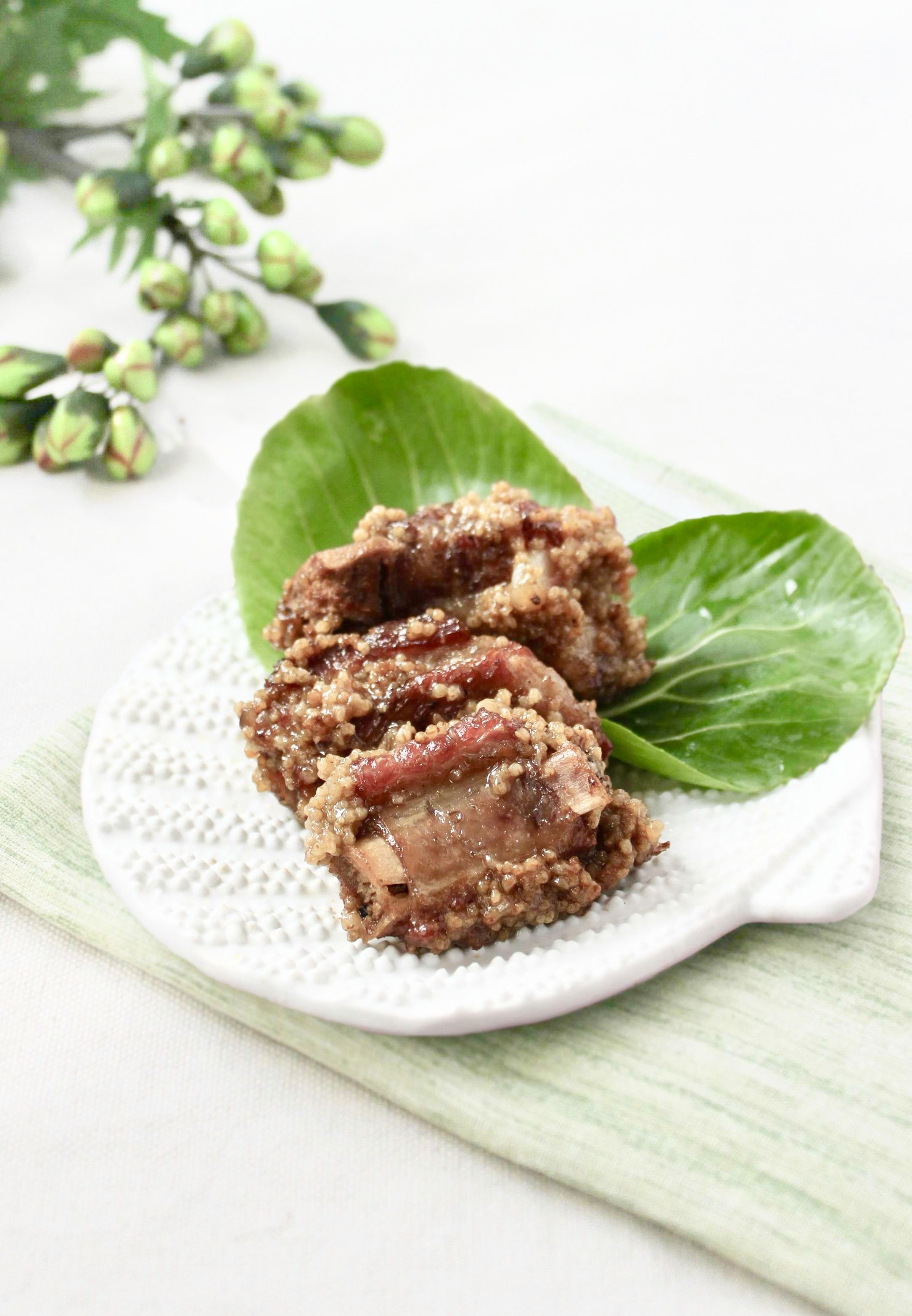 材料:猪肋排500克、黑小米100克、糯米50克、棕叶4个