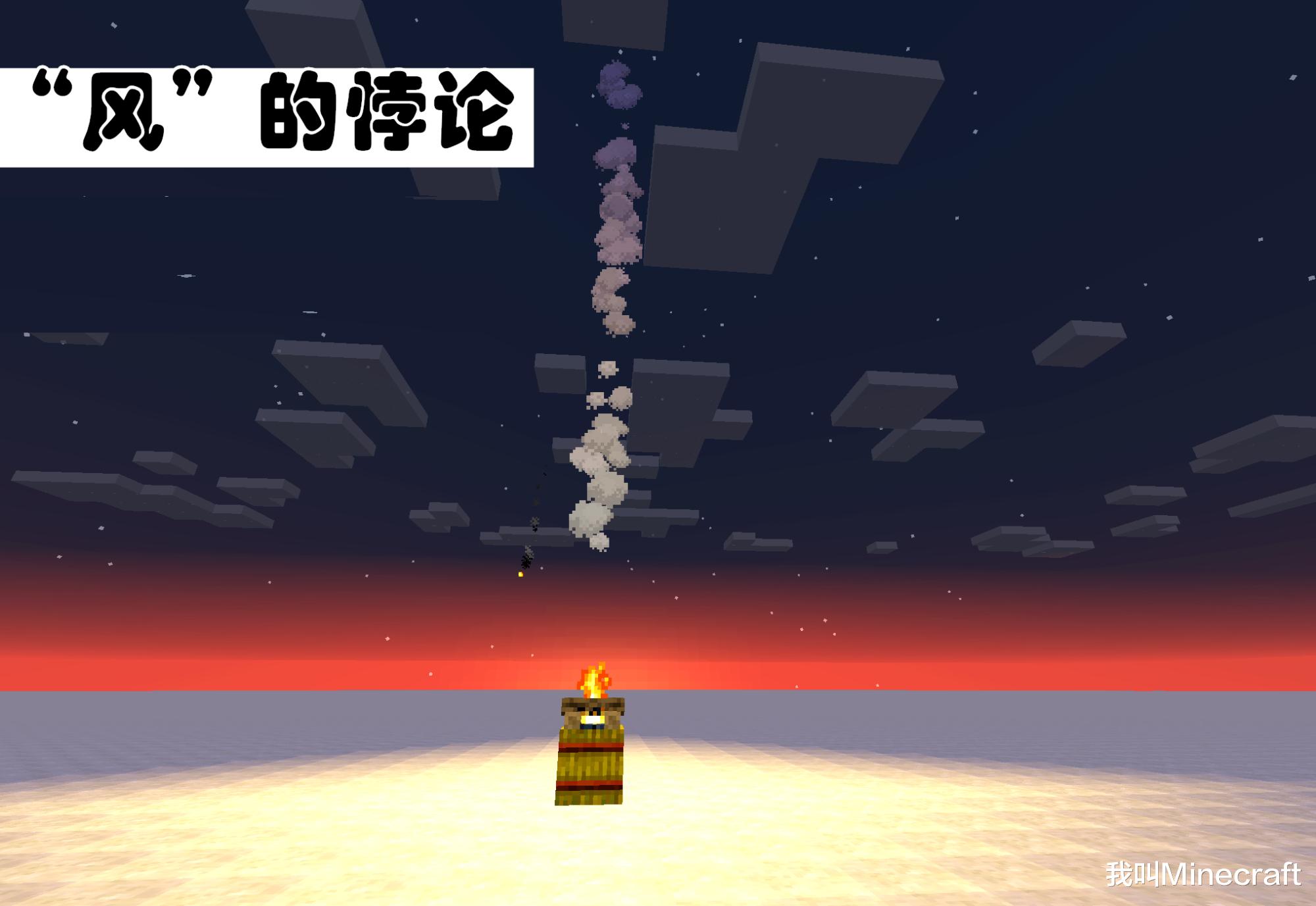1、风的悖论;云向西飘证明了Minecraft有一股神秘的东风,然而营火方块所产生的烟雾无论是在哪一层都会一直向上飘飞,这证明了mc没有风。于是悖论诞生:mc有风么?