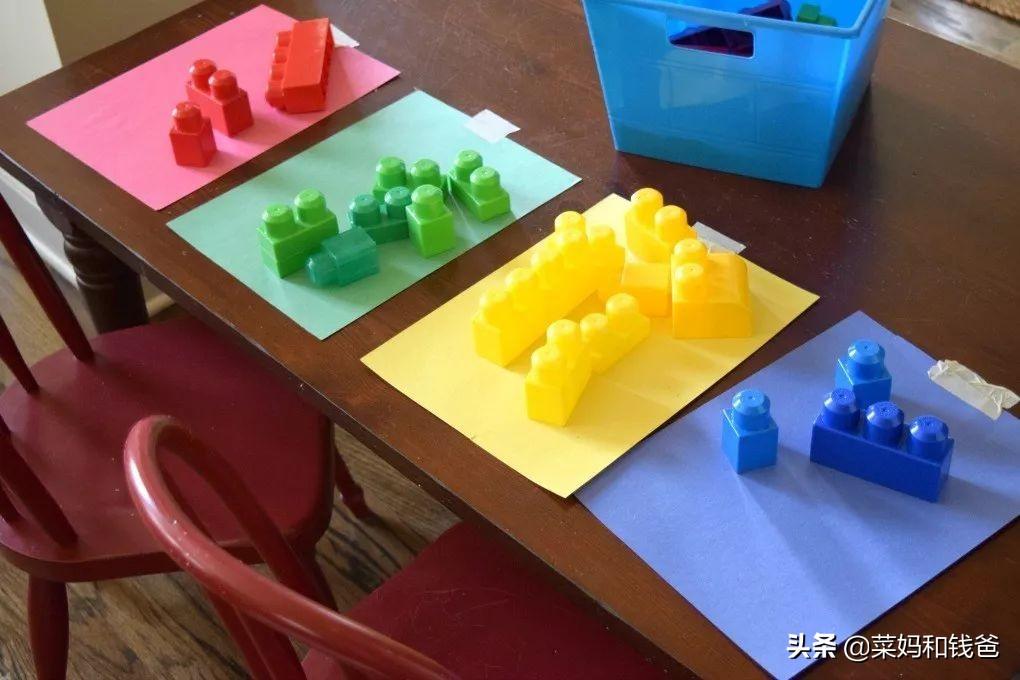 这个阶段的宝宝对不同形状和颜色有了一定的感知,可以让宝宝试着分类啦!通常可以先试试从颜色开始,然后是简单的形状。 家里的多种物品都可以进行,比如你摆出不同颜色区域,让孩子把不同颜色的玩具放入对应的区域。或者拿两个篮子,贴上不同颜色,让孩子把对应颜色的纸片放入。