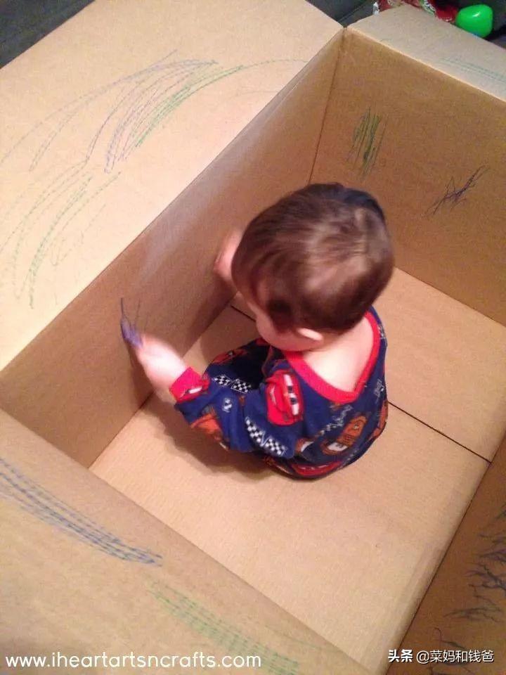 终极大招! 找一个干净的纸箱,把宝宝放进去给他们一只彩笔就行啦~~不用担心画得到处都是。
