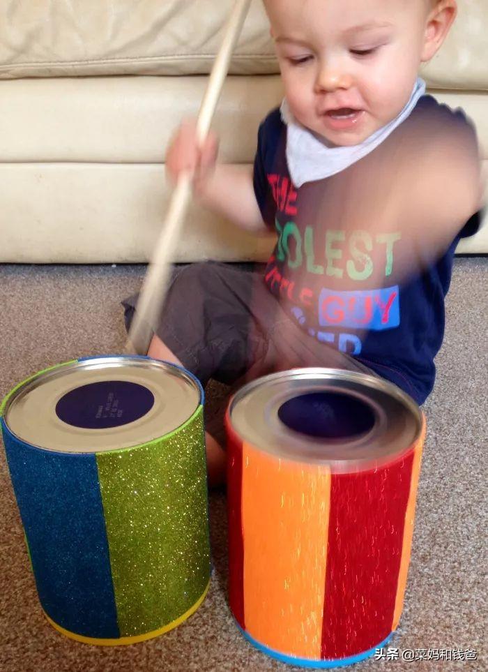 https://www.instagram.com/p/BotxO_RlOK-/ 参照这个做法,可以打印很多你喜欢的图案。 12【自制小鼓】 这个我们家弟弟最喜欢玩啦!家里任何不同质地的东西都可以作为“鼓”,取两根木棒或是筷子就可以啦。敲打的声音不同,会让宝宝非常感兴趣。可以鼓励宝宝多做尝试,多发掘他自己喜欢的物体。