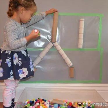 把纸巾的空直筒收集起来,固定在墙上或门上,找一些小球或其他轻软的物体试试看吧! 宝宝会特别感兴趣,喜欢看它们掉落的样子。