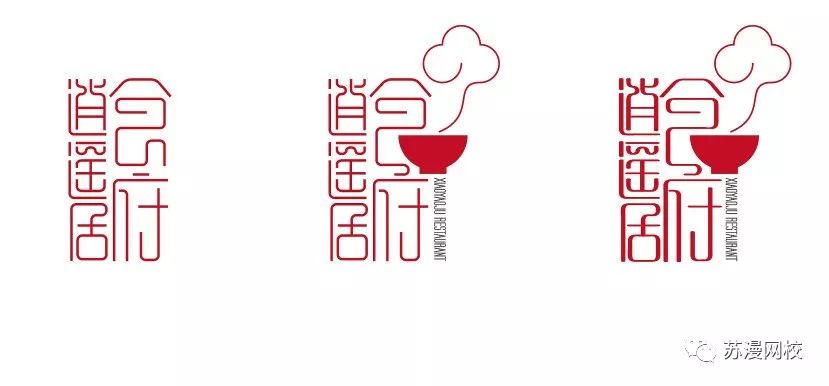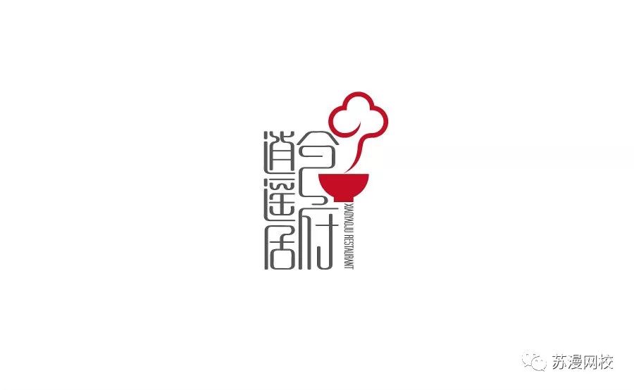 第五步:摆放一个好看的形态,然后加入些辅助的,能表达字体其含义的地方,我这里是个饭馆,所以我加入了一个碗的样子,然后画了朵祥云,让人感觉饭菜很香,