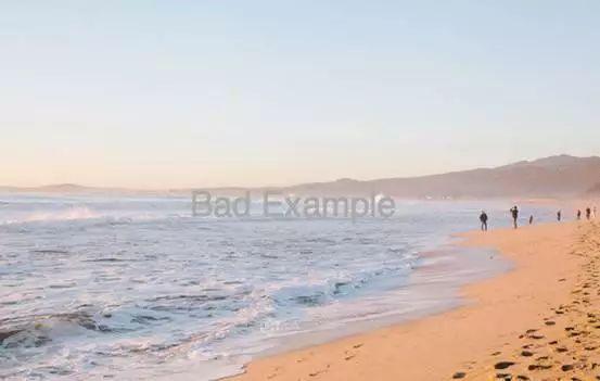 如下图所示,选取一个相对均匀,开阔的天空区域,这是放置文本的极佳位置。相反,将文本直接放置在图片中间,有地平线的位置,致使文本的辨识度差。