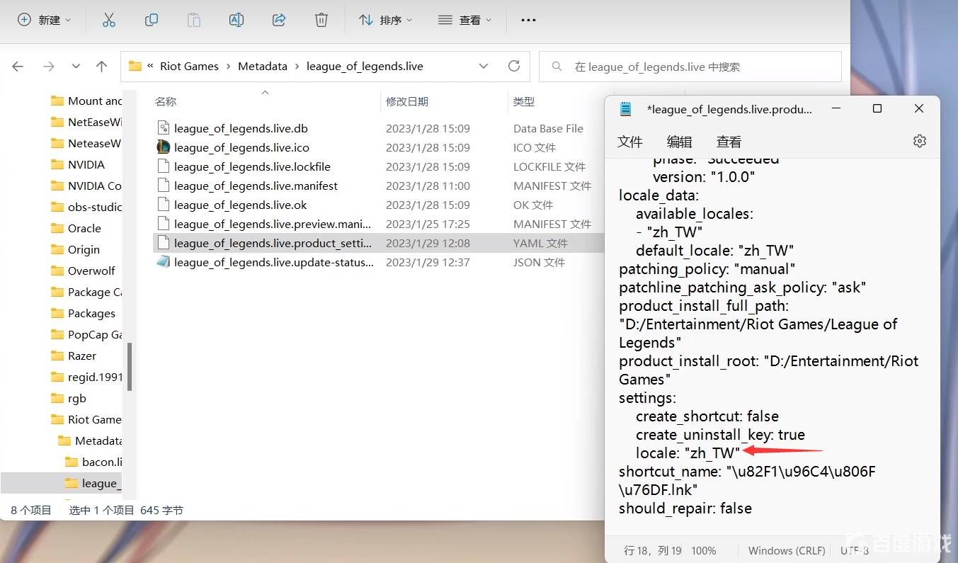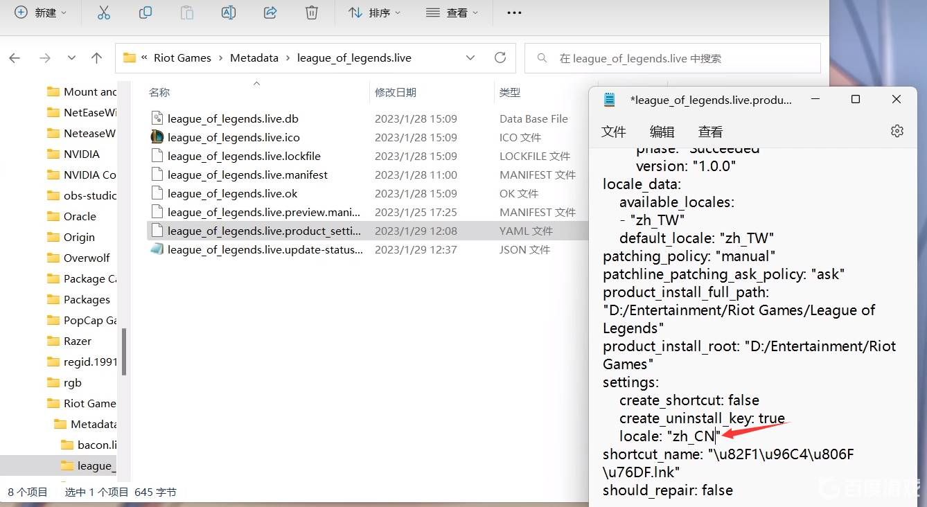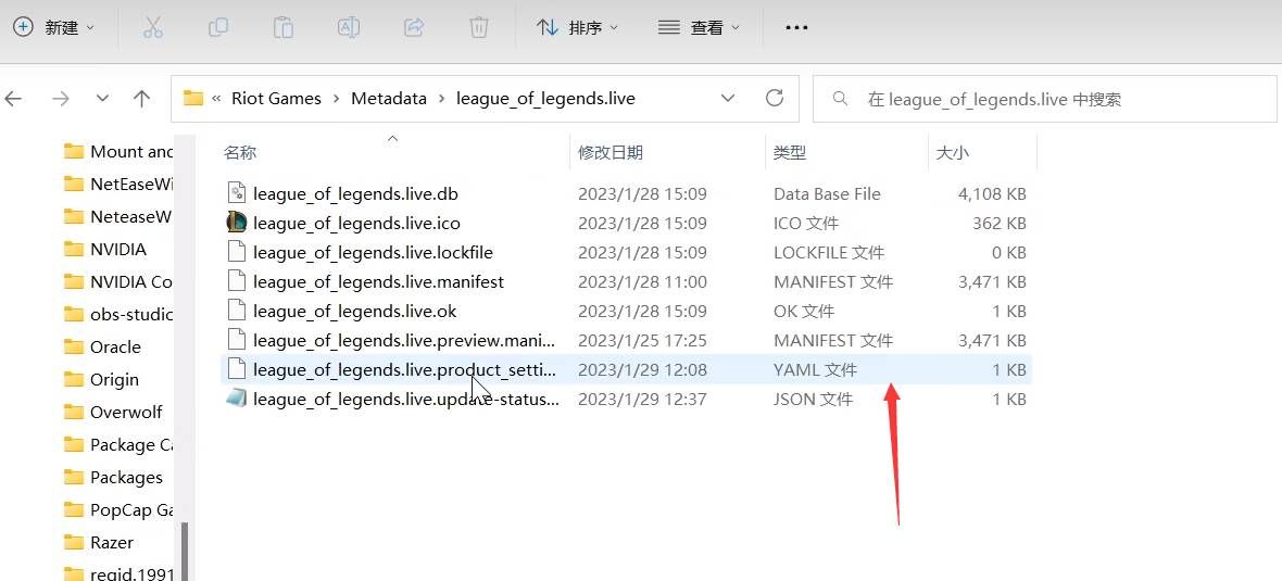 然后再继续按小编提供的图片依次点击文件夹进入,大家找一找有没有该文件,eague_of_legends.live.product_settings.yaml。