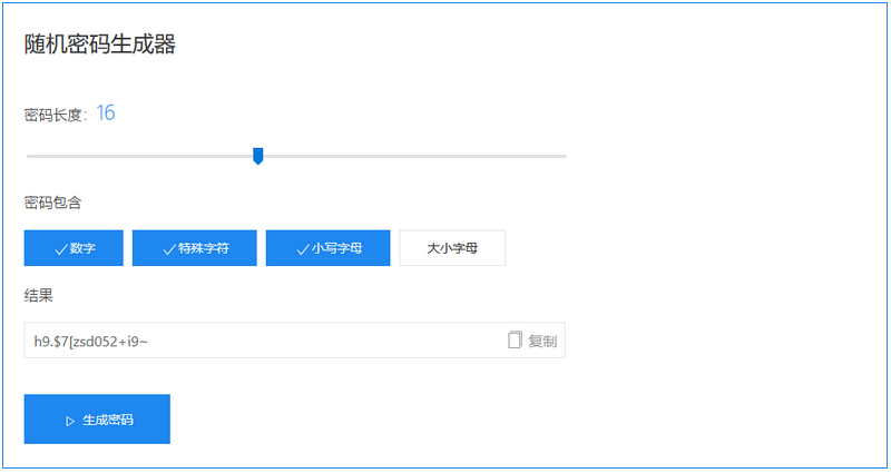 你是不是曾经也使用过它们?这是全球黑客统计出的前十最高使用频率的密码!如果使用了这些密码,可想而知你的账号被盗的风险有多大!而且在不同网站平台使用同样的账号和密码进行注册登录风险更大。俗话说不要把所有的鸡蛋放在一个篮子里。对不同的平台密码一定要不同,那么问题来了:造密码这事情说难不难,但还是比较费脑细胞,特别对于选择困难户和完美主义者来说简直就是噩梦!何不让这份工作交给我们的随机密码生成器?你可以根据需要自定义密码种子和长度,然后一键便可生成强壮的密码。