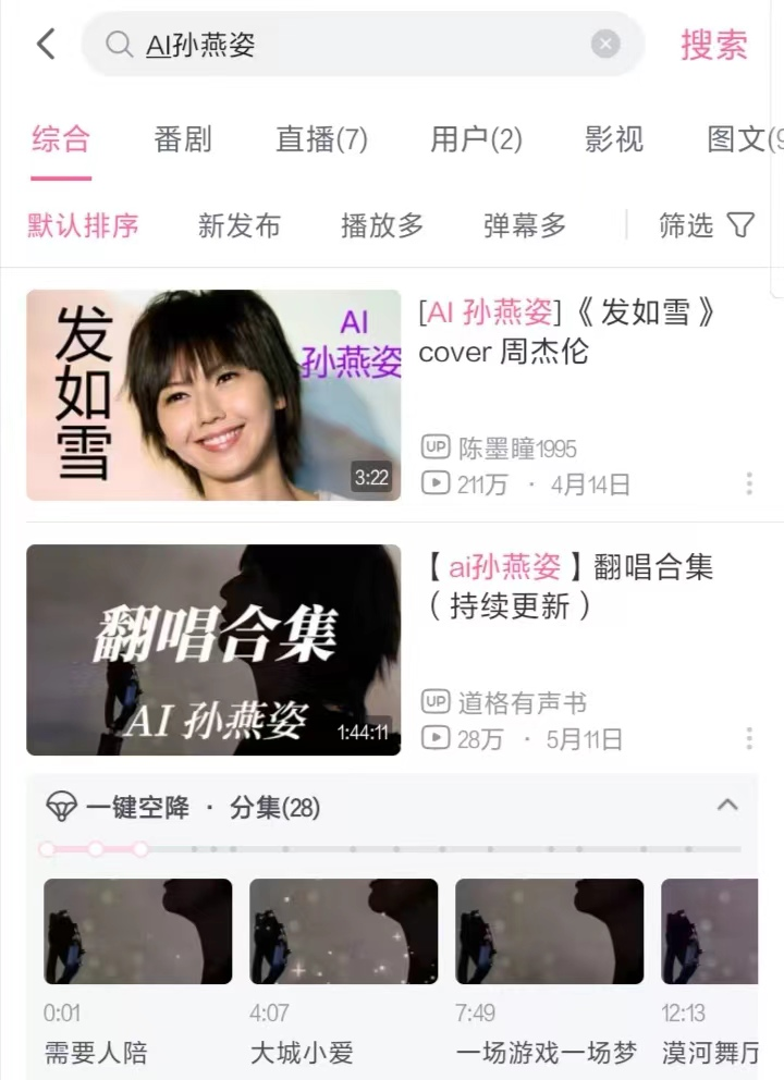 近日,B站音乐区推出了“虚拟之声创作计划”,话题“AI虚拟之声实验室”鼓励用户进行AI声音模型训练或应用,浏览量1.4亿,讨论量41.8万。