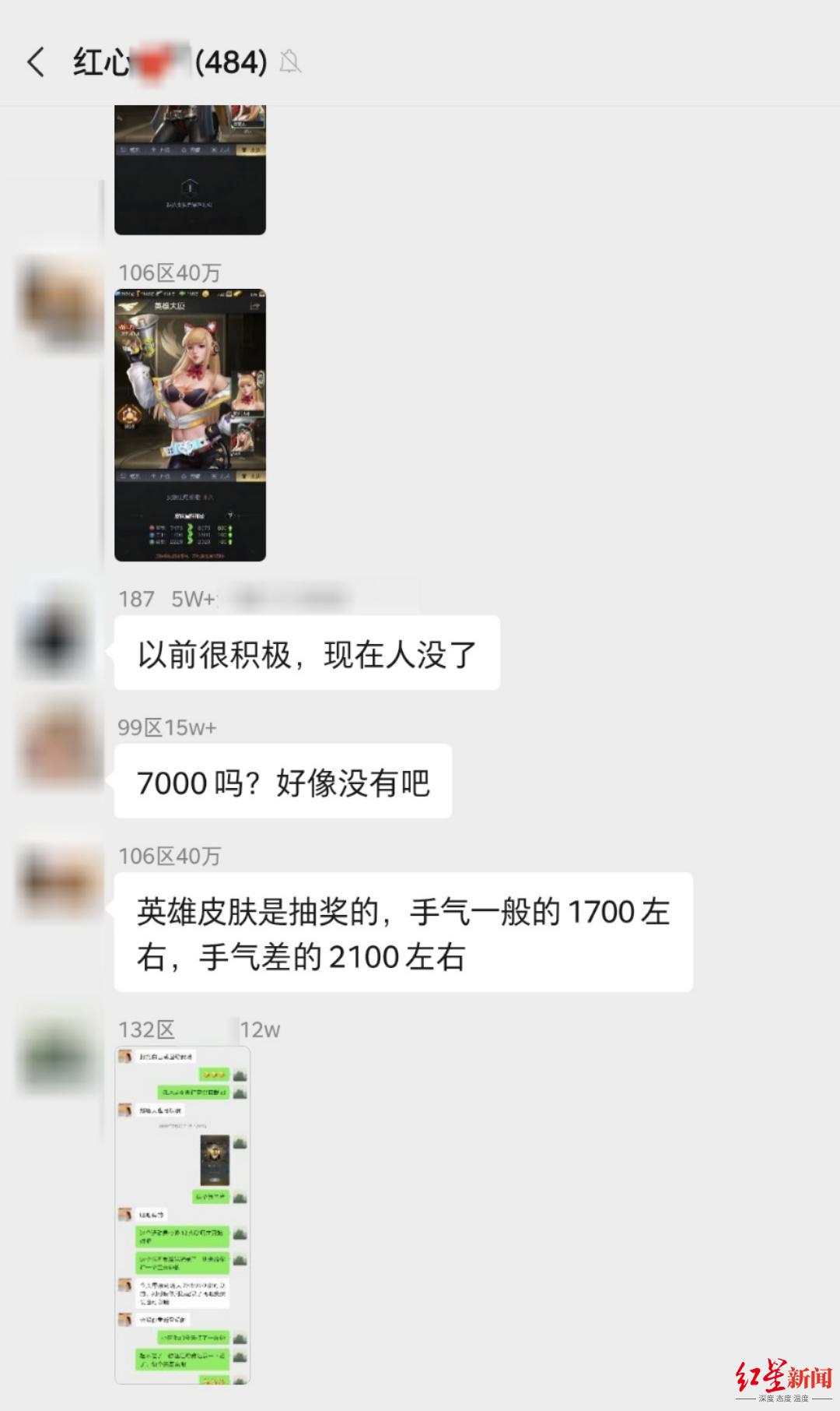 据玩家们填报的充值金额:300区的“猪猪”是个00后,氪了20万;484区的“果子”是个建筑行业的总经理,两个账号氪了10多万;106区一个头像是孟加拉豹猫的男士,氪了40万……群里还不时有人在讨论,某某氪了接近百万、某某氪了上百万……数字的单位不是手游里的虚拟货币,而是充进去的人民币。