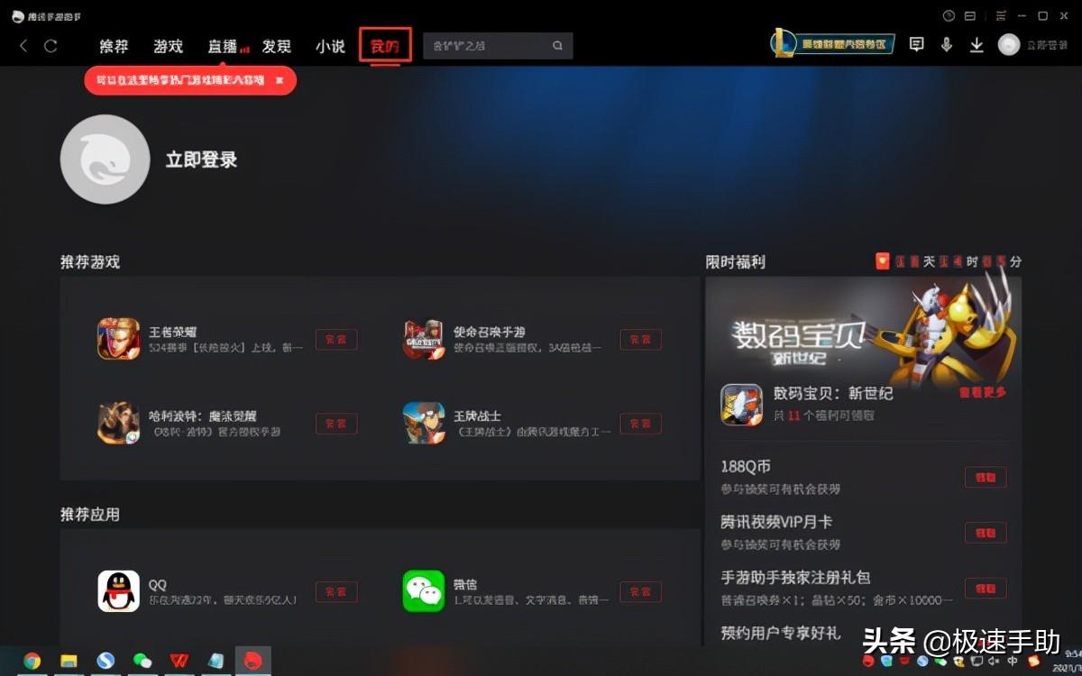 1、启动电脑上的腾讯手游助手软件,然后登录到自己的账号当中。