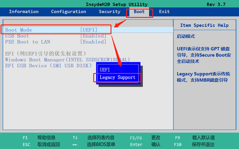 3、再将UEFI/Legacy Boot设置为Legacy only或Legacy first。