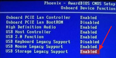 2、进入BIOS后。找到”USB Storage Legacy Support”或”USB Storage Function”选项,设置为”Enabled”。