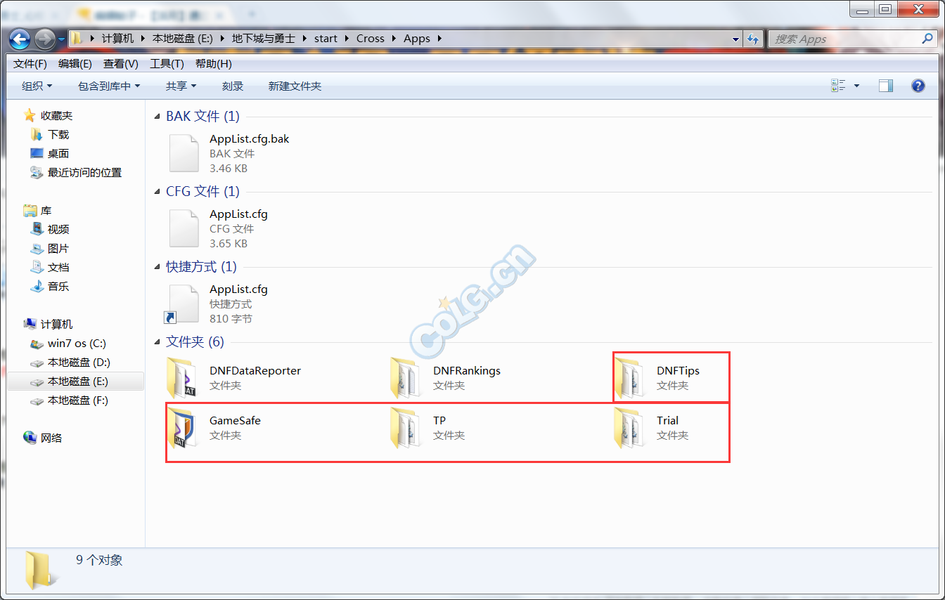 这个文件位于:X:\地下城与勇士\start\Cross\Apps\AppList.cfg