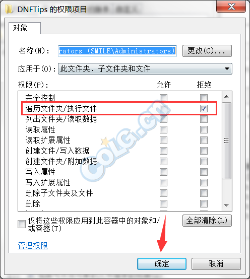 更改权限设置对以下文件,仅仅打钩拒绝“遍历文件夹/执行文件”