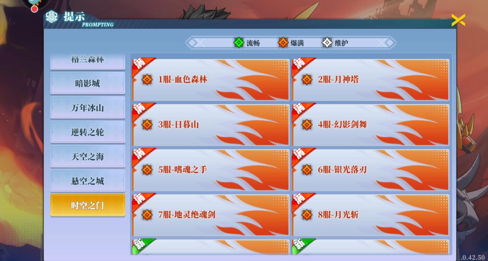 再往下面一翻一看,爆满的服还真不少。从每个服的命名也能看出来,都带有着浓浓的DNF味,如悬空之城、万年冰山、暗影城等。