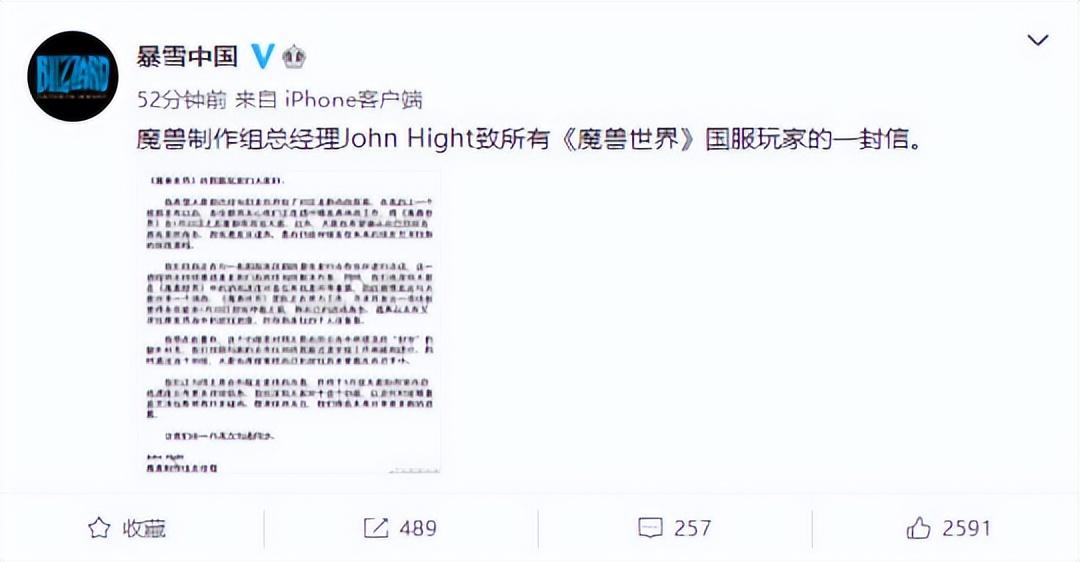 12月13日,暴雪中国官方微博在今日发布了一条魔兽制作组总经理 John Hight致所有《魔兽世界》国服玩家的一封信,在信中提到,目前暴雪已经在与一些国服地区新的潜在发行合作伙伴进行洽谈,这一进程将会持续推进直至暴雪找到恰当的解决方案。