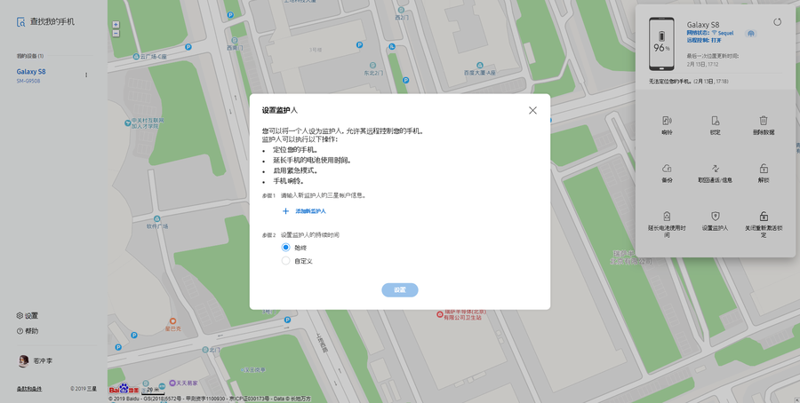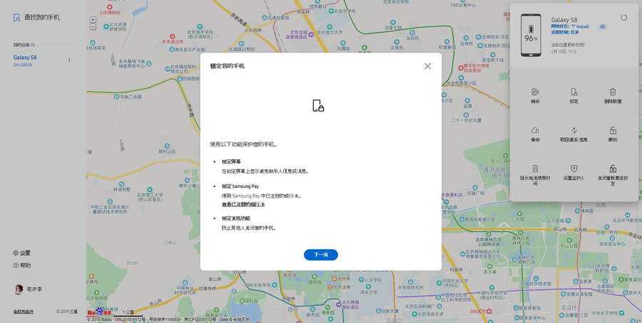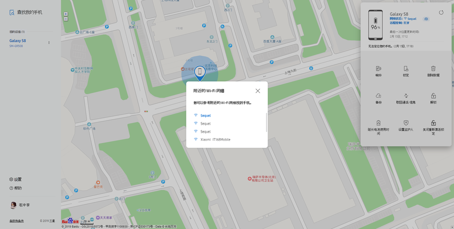 如果三星手机丢失,可以先锁定手机。除了锁定屏幕之外,同时会锁定手机上绑定的银行卡,并锁定关机功能。这样可以再丢手机的第一时间方式手机被关机,从而无法开启查找手机定位。除了响铃之外,三星手机还可以根据附近的wifi找到当前手机使用的wifi地点,一旦小偷连上wifi,可以通过附近wifi名称进行查找。