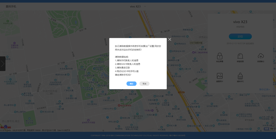 机主此时只需要发出“数据备份”指令,vivo手机就会把手机中的联系人、短信、照片、便签以及其它应用信息等全部备份到vivo云端数据库。当发现备份已经完成之后,机主可以选择“清除手机”指令,进而全然清除丢失手机中保存的数据信息,这样完善的隐私保护机制,最大程度上保障了机主的隐私与数据安全问题。