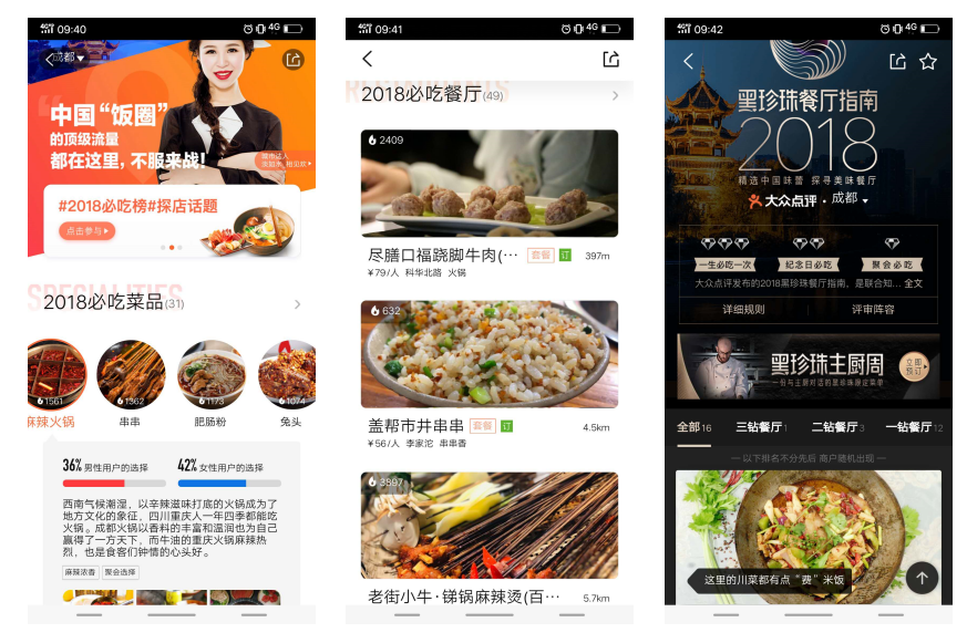 也解决了用户追求品质生活,为就餐提供就餐指南,黑珍珠榜单通过“一生必吃一次”的黑珍珠三钻餐厅、“纪念日必吃”的黑珍珠二钻餐厅和“好友聚会必吃”的黑珍珠一钻餐厅(类似于米其林)这些按照地域排布,方便用户查找、咨询以及为用户决策提供参考。