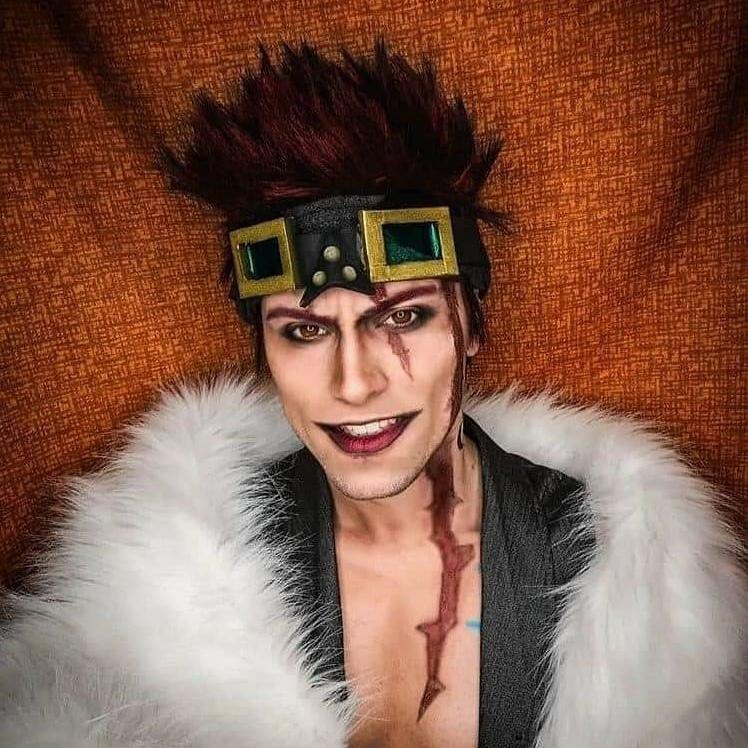 基德这张比罗那张好一点,但主要coser本身更接近基德一些,这张的伤疤的涂色痕迹比较重,但红发刺猬头还是比较还原。