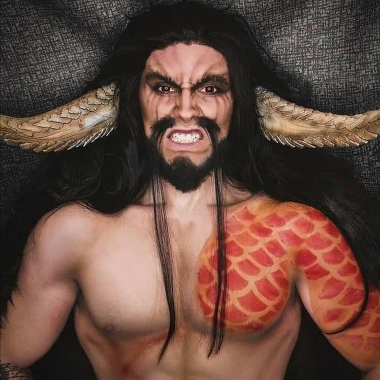 凯多长着一对龙角似的长角,嘴上留着犹如龙须一般长的胡须,左臂有龙鳞纹身,黑发披肩。这些关键的要素都被Axel掌握了,但气场似乎还差点意思。