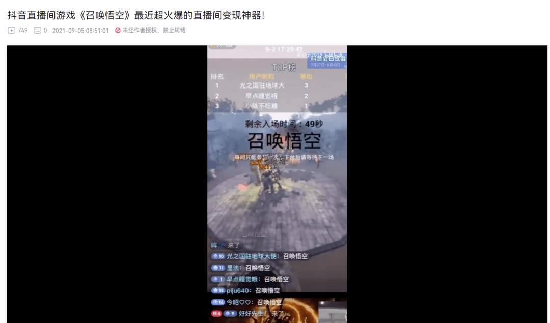 弹幕游戏的火爆,不仅仅在于玩家可以参与其中,更重要的是玩家可以通过发送弹幕控制游戏进程,这种互动性极强的游戏模式,不仅增加了玩家的参与感,也使得游戏更加富有乐趣性。早在2021年,就有人发现了这个商机,推出了一个叫《召唤悟空》的游戏,这款游戏通过发送弹幕召唤悟空,参与大乱斗,刷礼物可以释放技能,玩家存活越久,等级越高。
