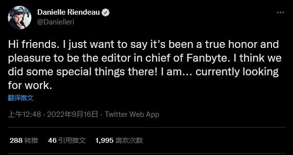 据报道,Fanbyte的裁员非常突然,一些人表示他们前一个小时还在和同事一起工作,直到主编Danielle Riendeau在推特宣布自己被裁员而被公众所知