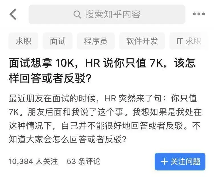 “面试想拿10K,HR说你只值7K,该怎样回答或者反驳?”