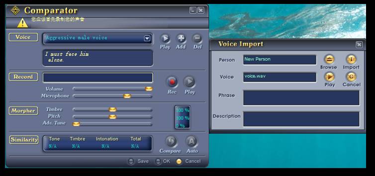 此外,VCS7.0也允许用户自己添加声音文件进行更改。方法是点击下方的Comparator按键,进入后选择Add,再选择Browse,就能自行添加音频文件了,此时用户就能对任意音频文件的声音进行变声调整了。如果用户想要改变视频文件中的声音的话,那么则需要将视频文件中的音频提取出来单独进行调整,变声后再合成回视频,具体操作这里就不多说了。