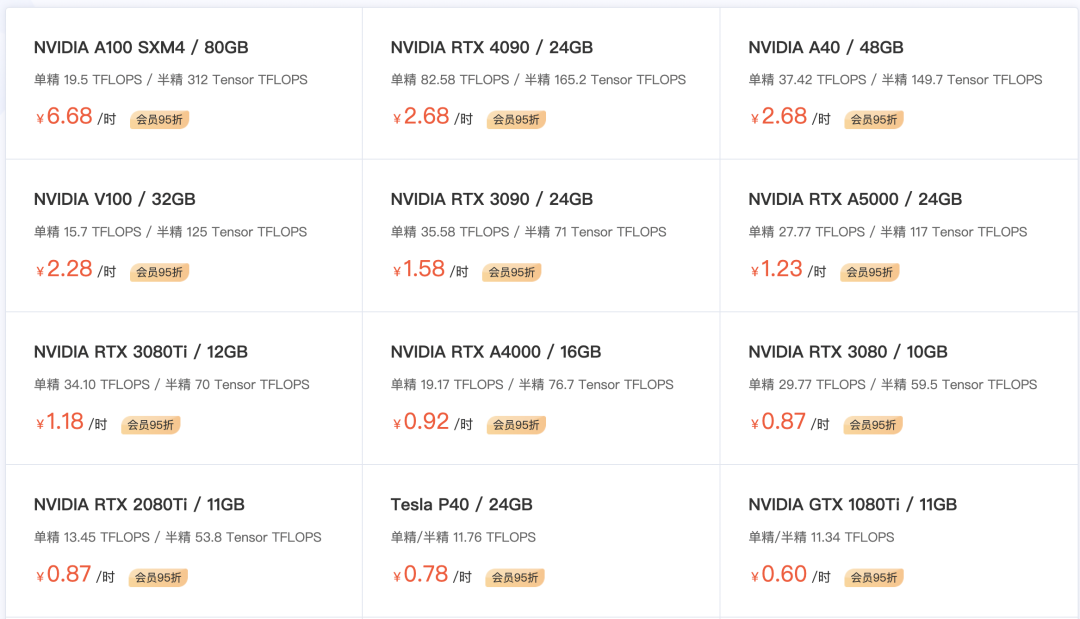 “如果电脑配置不行,也可以租用一些云端算力。”如今,国内大大小小的云计算平台都有针对AIGC需求推出云端分布式GPU,价格低的仅需几毛钱一小时。“显卡能力越强,训练效率就越高,当然也越贵。”