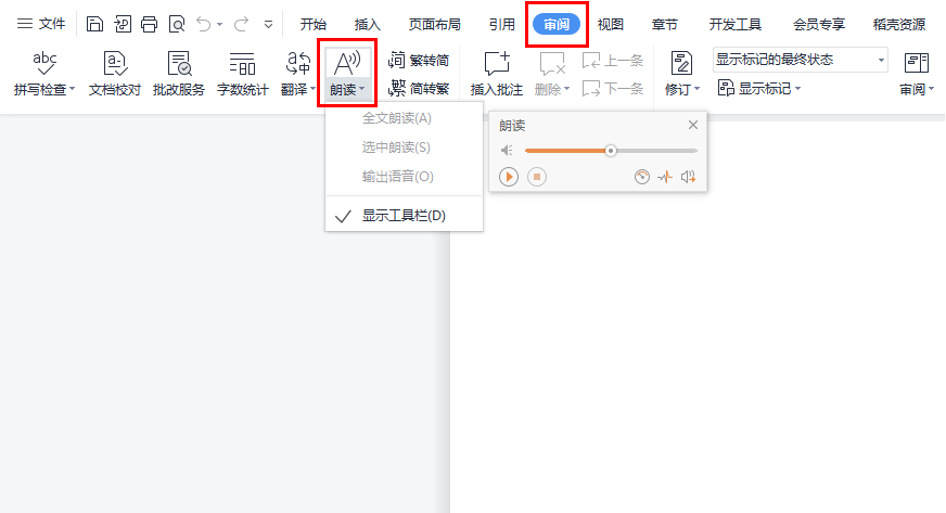 打开Word——点击【审阅】——【朗读】——【输出语音】即可。可以实时调整语速和语调哦!