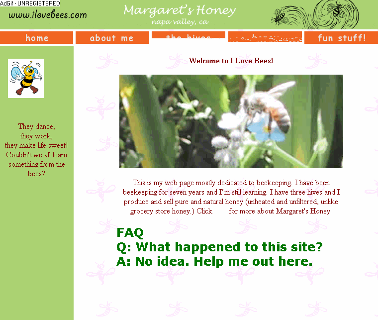 在有限的信息中,人们发现这个主页的侄女叫 Dana ,并且找到了她的博客,从记录中看到了她对于 ilovebees 主页被攻击的记录。
