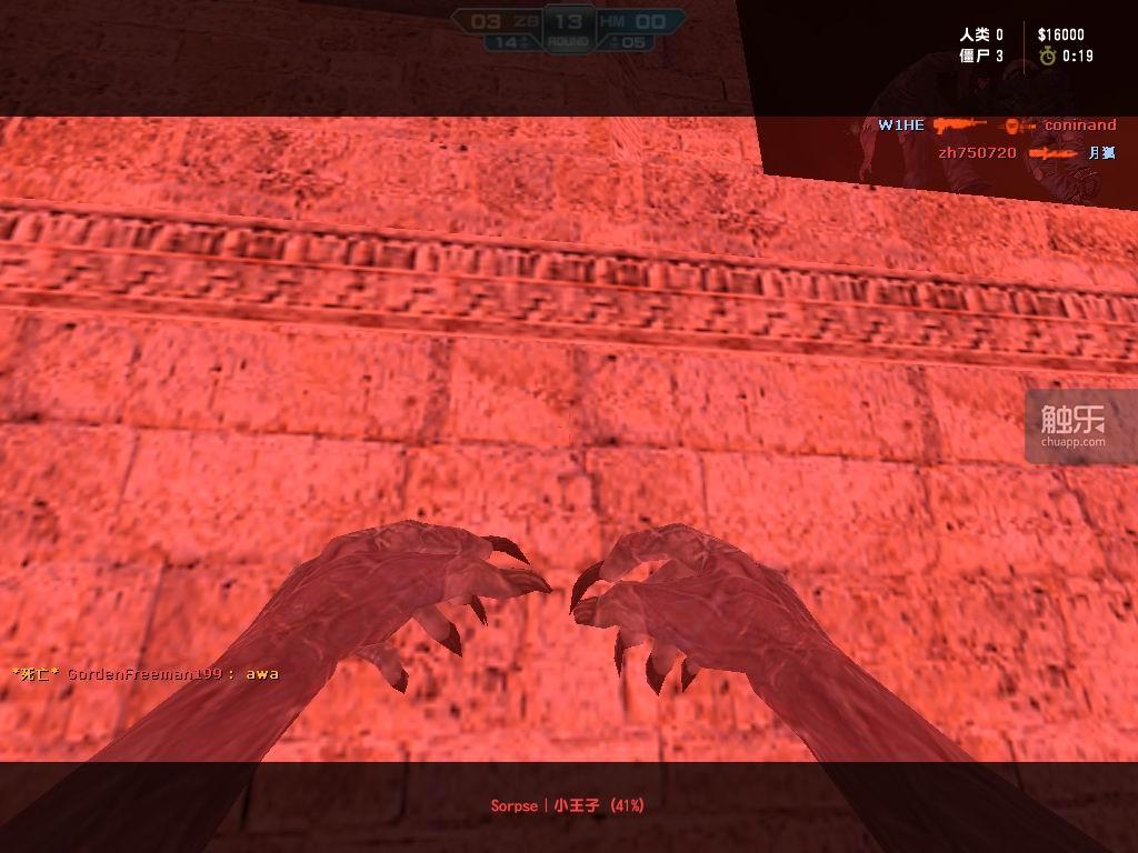 被僵尸感染的玩家视野会变成鲜艳的红色。当时,如果在网吧看到有人对着红色的屏幕较劲,那他一定是在玩CSOL