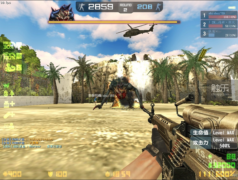在这个模式里,玩家变得异常团结,拥有付费武器的玩家为了顺利通关,会花光自己打怪赚来的金币,购买大量付费武器分发给新手和免费玩家。一张图完整打下来可能会十分艰难,耗时几个小时也不是没有可能。虽然一次战斗打下来很难,但玩家的氛围还是非常友好的。