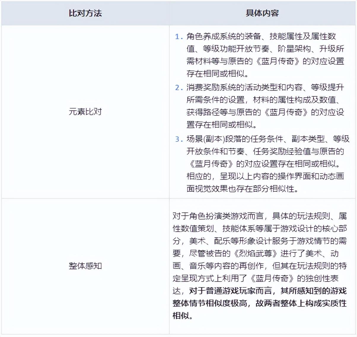 在对网络游戏的整体保护模式进行侵权中的实质性相似的比对时,大部分法院还是采纳“元素比对+整体感知”相结合的方式进行实质性相似的认定。