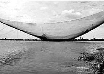 第六类 敷网之拦河撑架敷网作业图