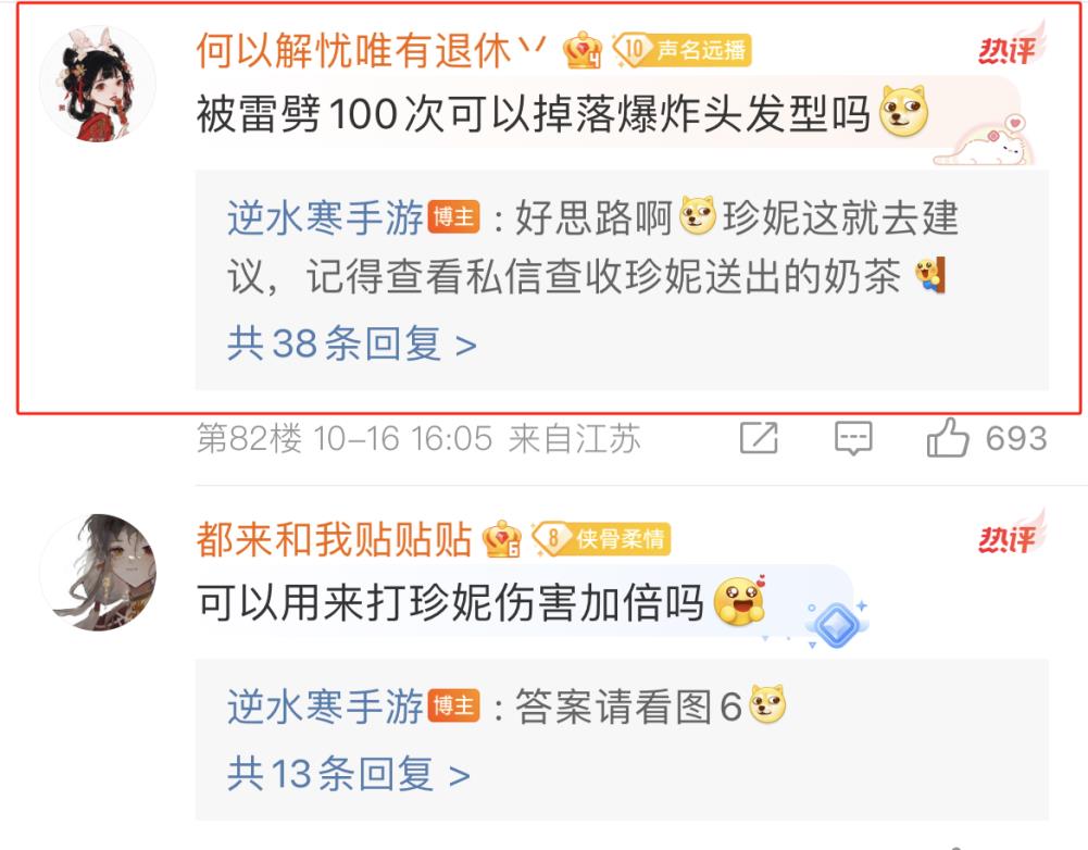 其中涉及随机落雷,这为游戏增添了一些新的玩法。雷元素以及全新的冰雷五行反应让玩家们脑洞大开,不少玩家开始发挥自己的想象力。有玩家建议被雷劈100次后可以掉落一个爆炸头发型,官方也认同这个建议。
