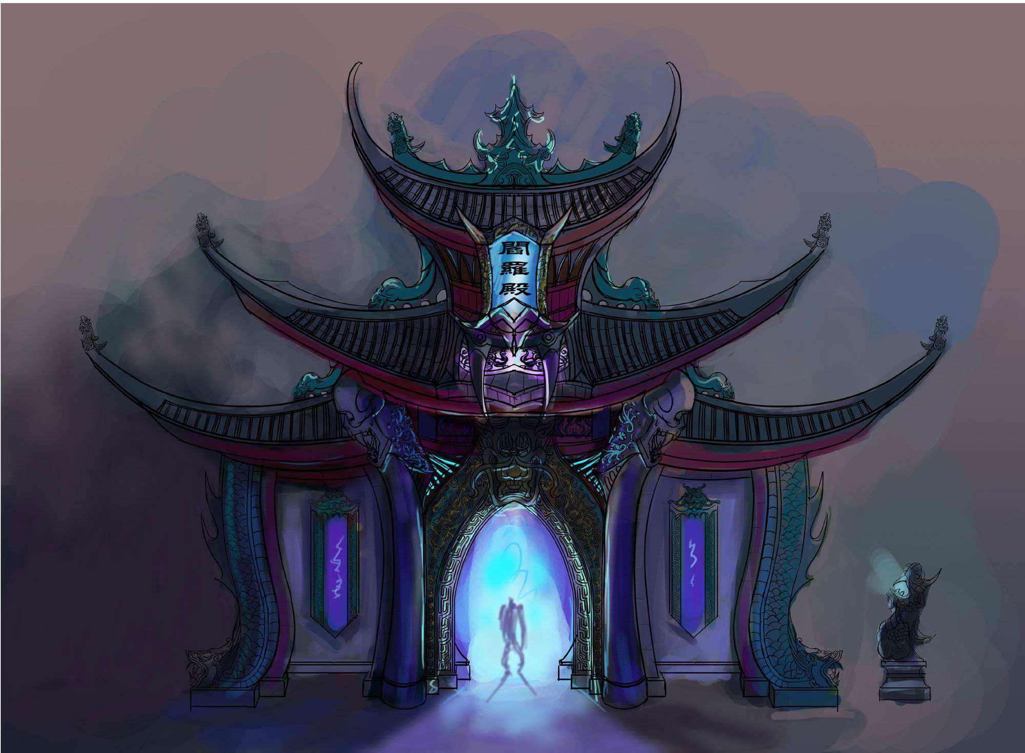 据道经记载:“罗酆山在北方癸地,周回三万里,高二千六百里,山上有六宫,洞中有六宫,是为六天,鬼神之宫也。”从这句话的描述来看,罗酆山方圆三万里,高二千六百里,显然不会在我们的这个世界存在。罗酆山位于北方之地,而北方在五行中属水,又因为颜色属黑色,“黑”又称之为“玄”,因此又可以称为“玄冥”。我们可以理解罗酆山是位于北方地下充满水的世界里。