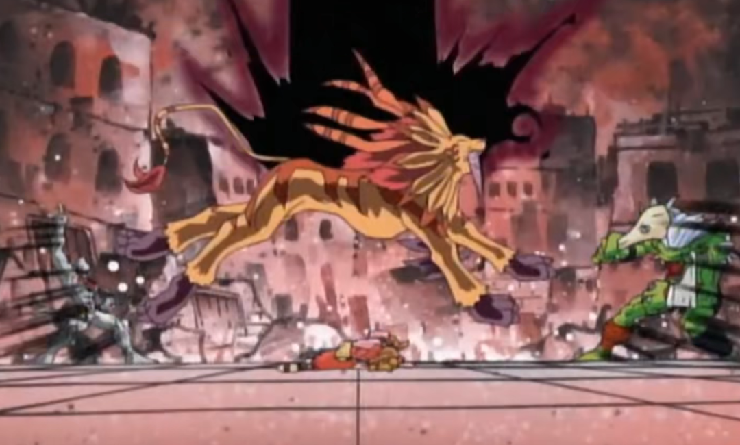 没办法,主角又一次踏上了工具人之旅,我们在黑暗小岛先后将钢铁海龙兽、猩猩兽、木偶兽、无限龙兽这些大反派一一抹除,期间还会发生黄金剑狮兽为了在钢铁猩猩兽面前掩护我们而死的悲壮剧情。