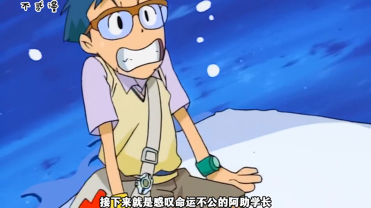 接下来就是感叹命运不公的阿助学长。眼看伙伴即将下线,哥玛萌火速进化成海狮兽,灵活躲避对手所有攻击,一发鱼叉激光炮瞬间结束战斗。奥加兽只能眼睁睁看着两人溜走,没想到穷凶恶极的他也是一个旱鸭子。充电两小时通话五分钟,海狮兽由于体力不支又退化成了哥玛兽。阿助学长就这样沉入海中。
