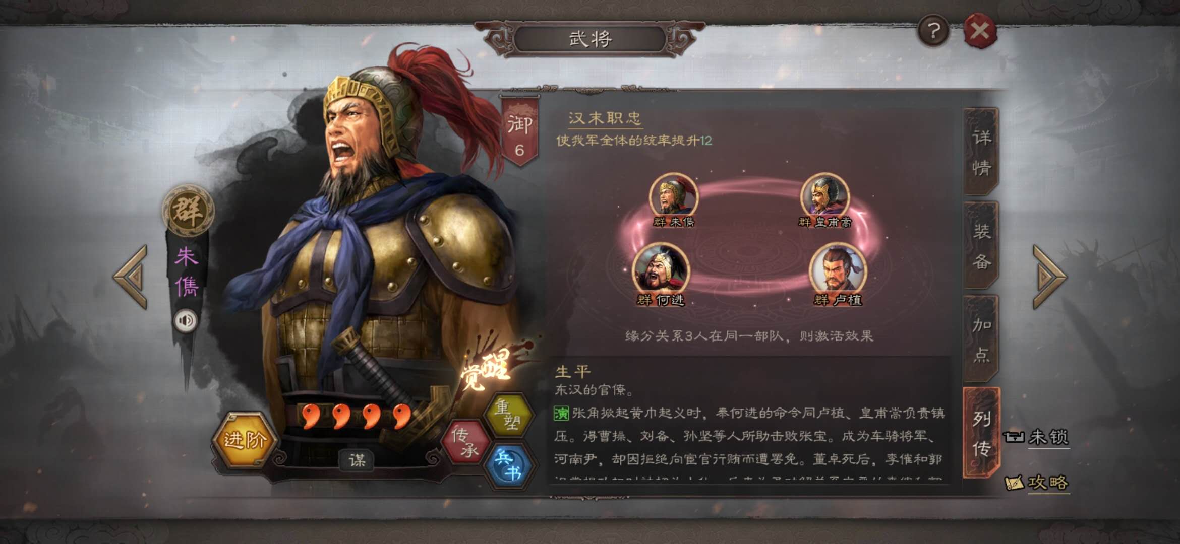 (副将)朱儁,战法搭配:挟权弄势+八门金锁阵