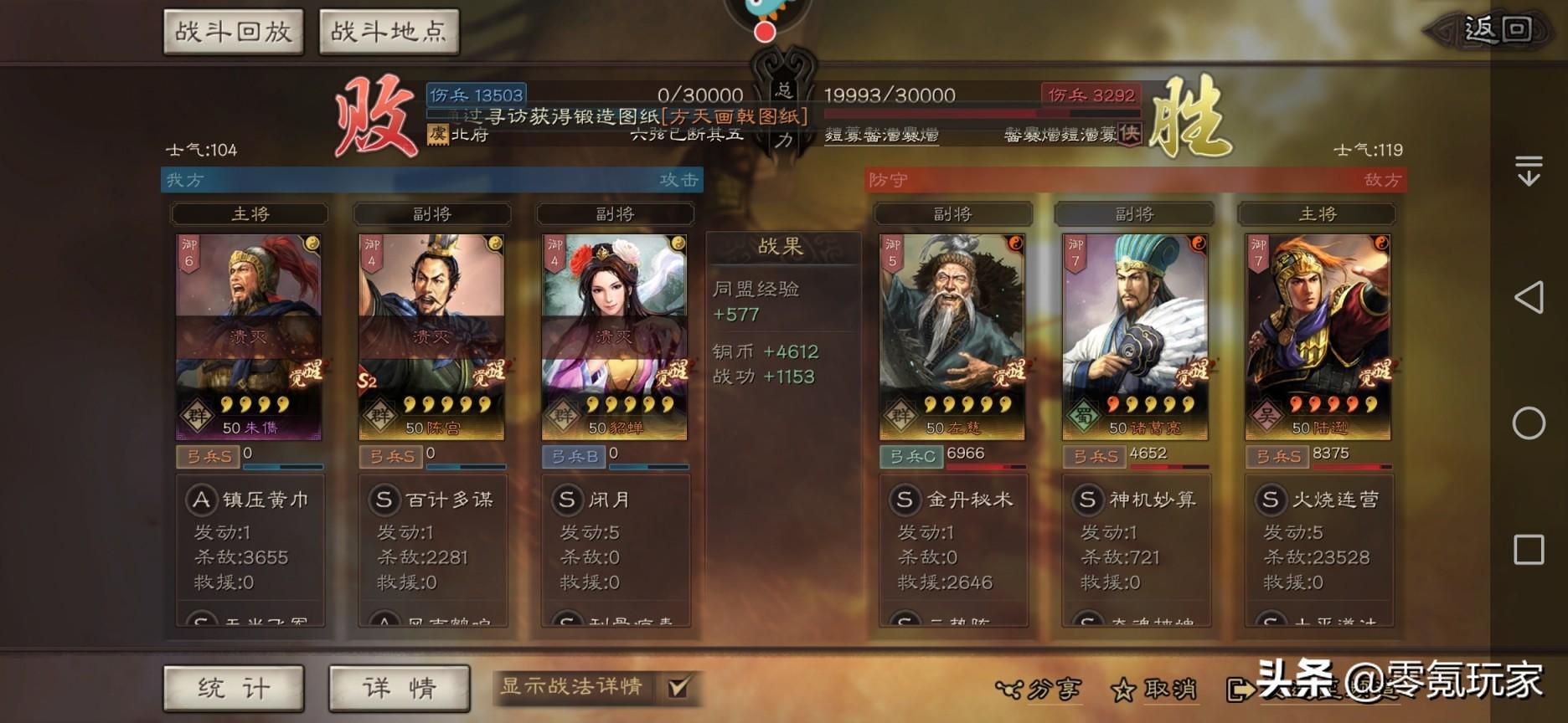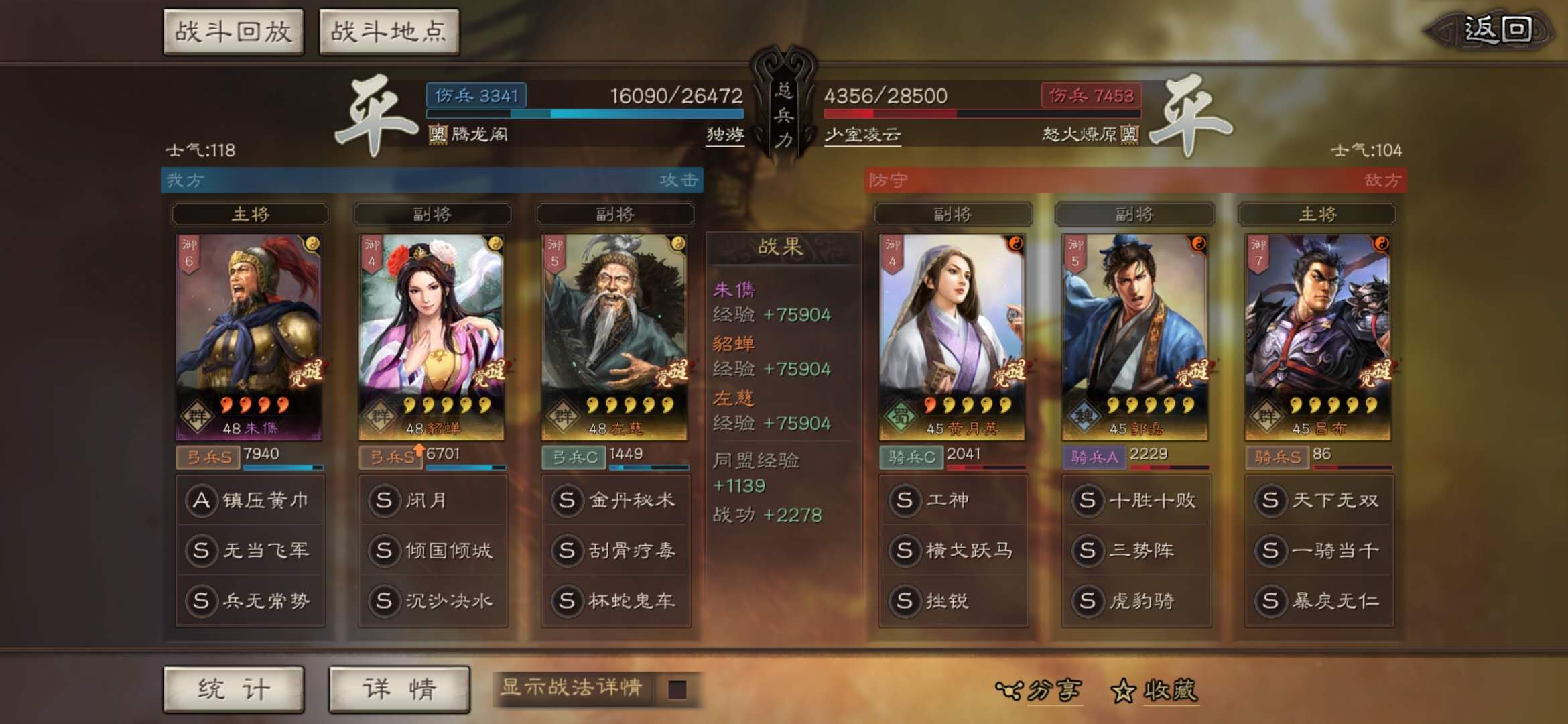 以上就是3种以朱儁为主的群弓搭配方案,仅为抛砖引玉。为了让大家看清楚配置,战报图就不显示各战法的伤害了,有兴趣的可以留言,也云感谢一下提供朱貂思路的玩家朋友。