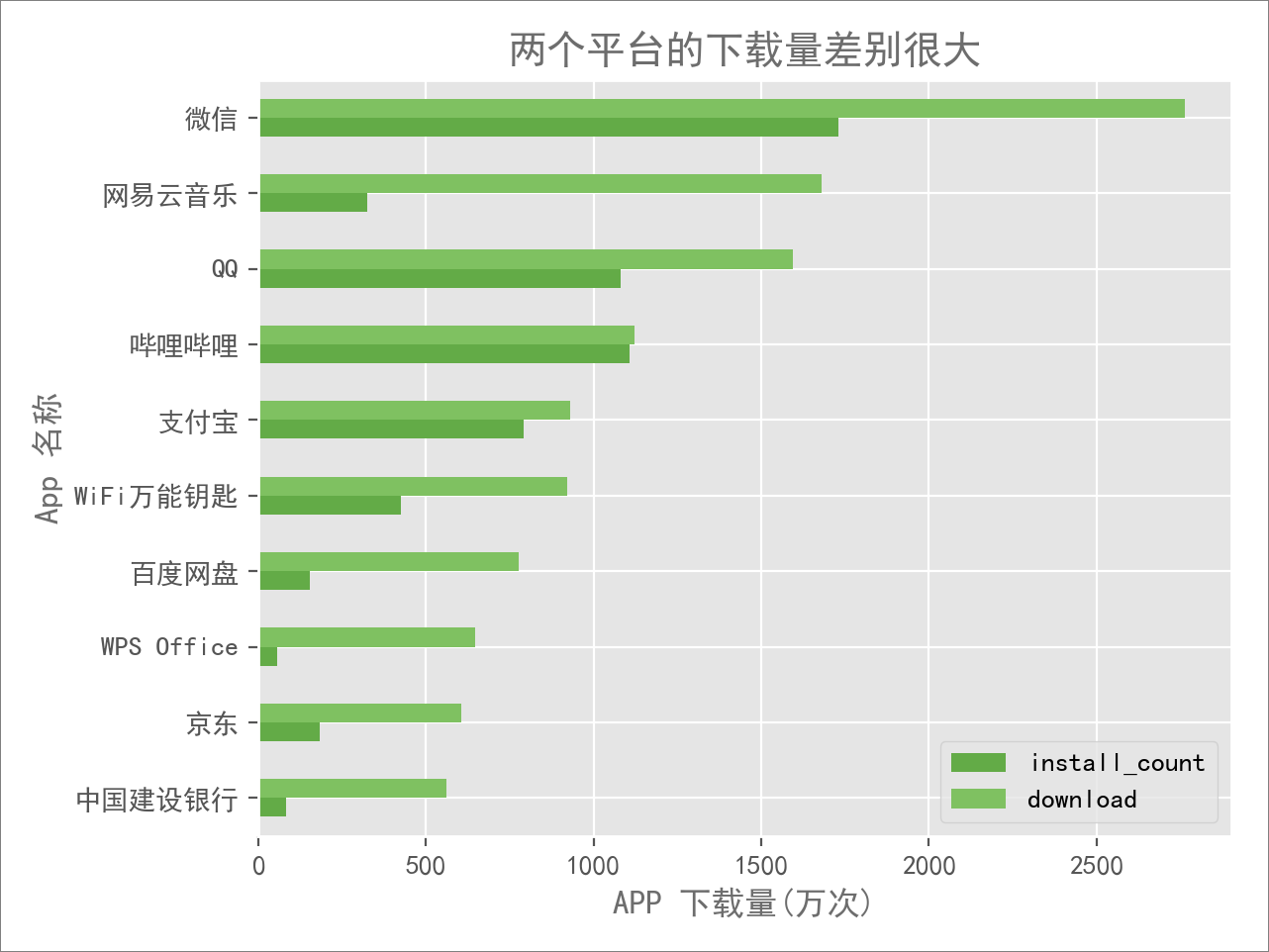 可以看到,两个平台上 App 下载数量差距还是很明显。