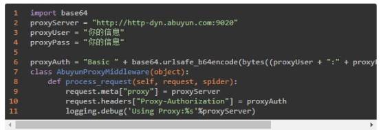 这里随机 UA 使用 **scrapy-fake-useragent **库,一行代码就能搞定,代理 IP 直接上阿布云付费代理,几块钱搞定简单省事。