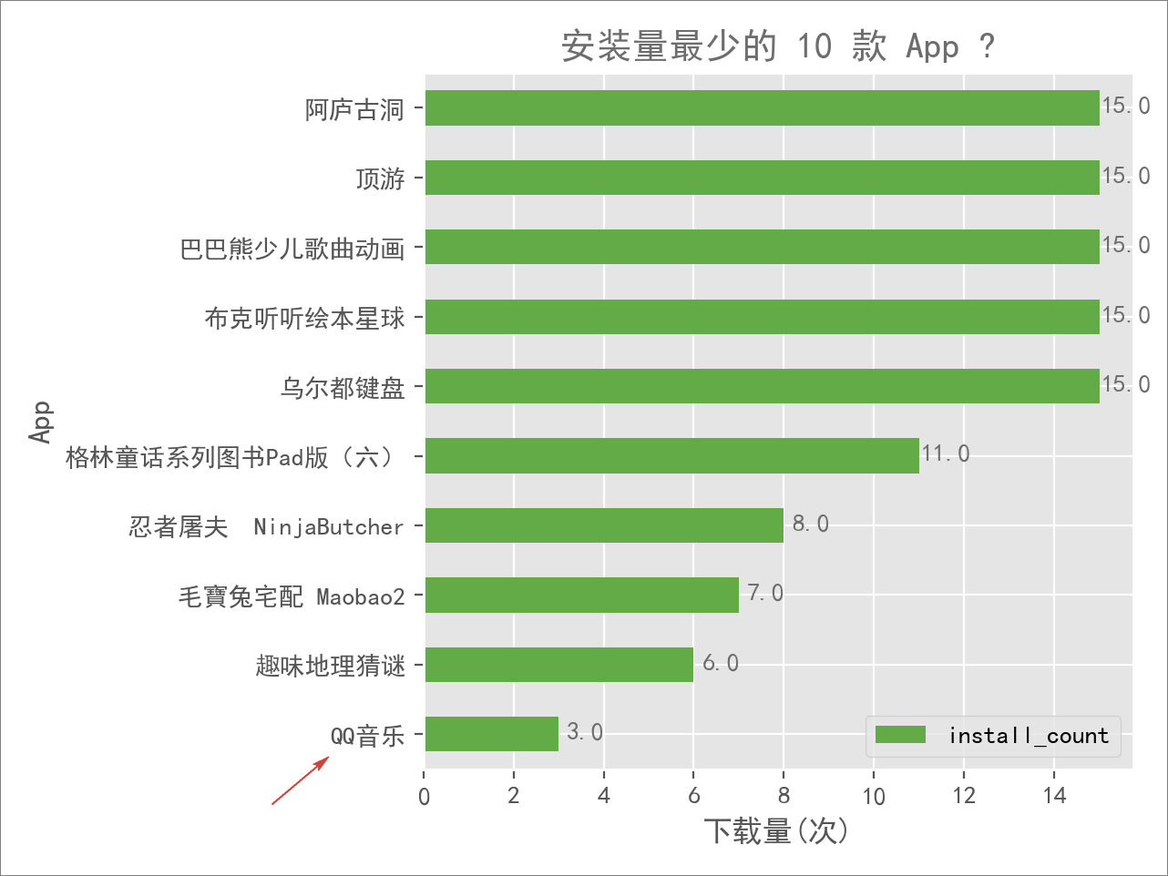 不死心,接着再看看安装量最少的 App 是什么情况,这里找出了其中最少的 10 款: