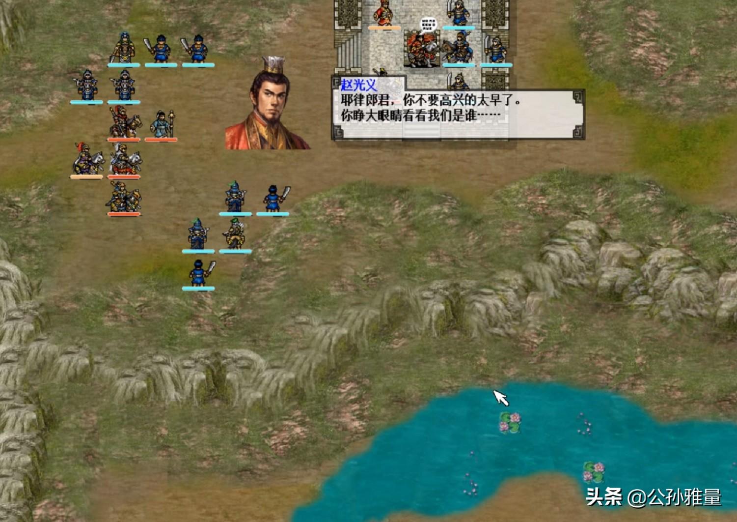 不仅如此,敌人到了后期,上到武将,下到小兵,几乎人人都装备了“豆袋”,可以自动回血,这又大大增加了游戏的挑战性。