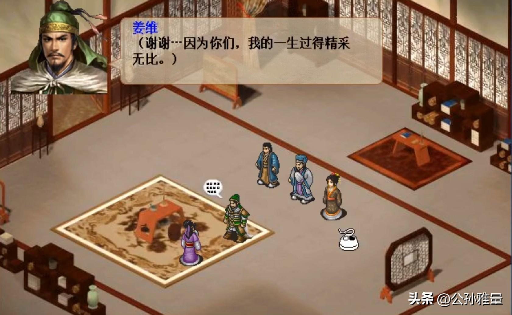 但这些倒是其次,游戏最大的精华还是在于对政治和权谋的刻画,比较写实。从诸葛亮北方中原,到曹魏和司马家族的斗争,从诸葛家族的覆灭,到姜维之死,一切都是那样让人感到无力。