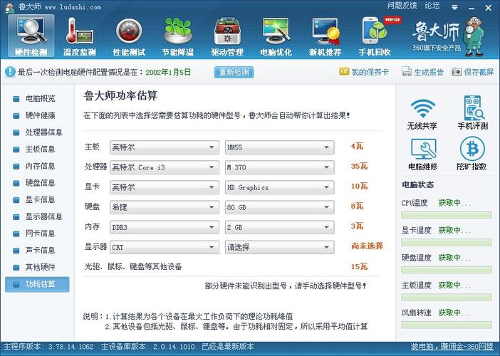 鲁大师实时检测计算机各类硬件,如CPU温度、显卡温度等温度的变化