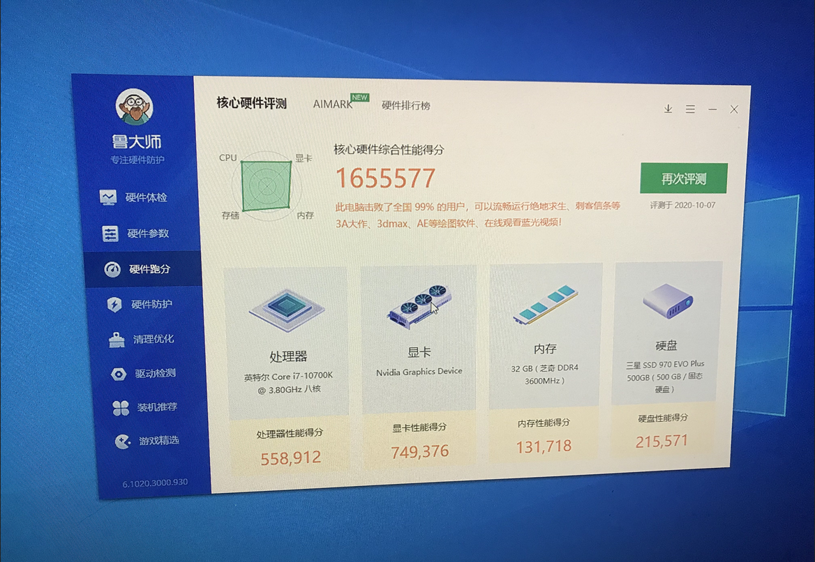 鲁大师可通过检测得出用户电脑综合性能评分、处理器速度等各项评分,让你清楚你的电脑